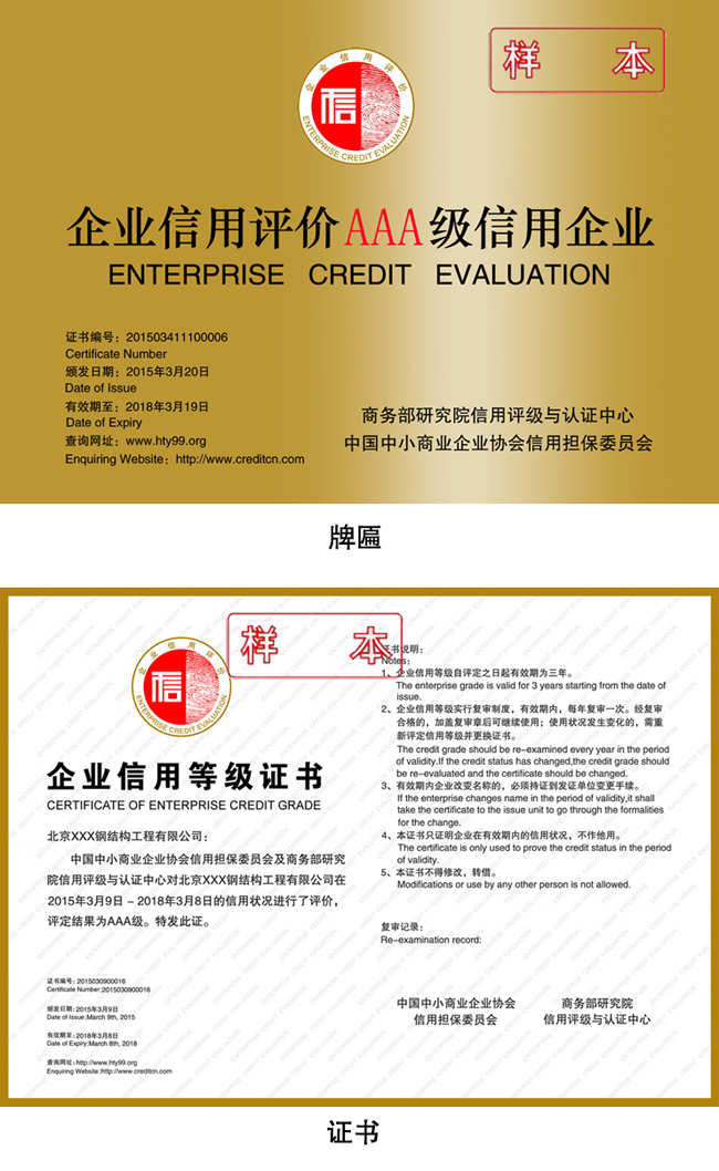 提升企业资质,获得国家政府的认可,颁发商务部统一编号的牌匾和证书,成为“国家A级信用企业单位”称号。