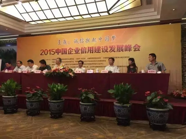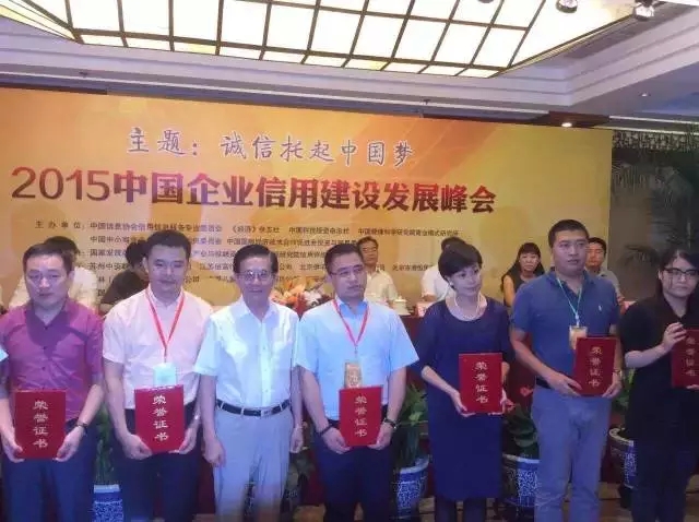 2015 年7月26日,由中国信息协会信用信息服务专业委员会、《经济》杂志、《中国科技投资》杂志、中国中小商业企业协会信用担保委员会、中国管理科学研究院商业模式研究所和中国国际经济技术合作促进会投资与贸易委员会共同举办的“2015 中国企业信用建设发展峰会”在北京西苑饭店隆重举行,本次峰会的主题是“诚信托起中国梦”。