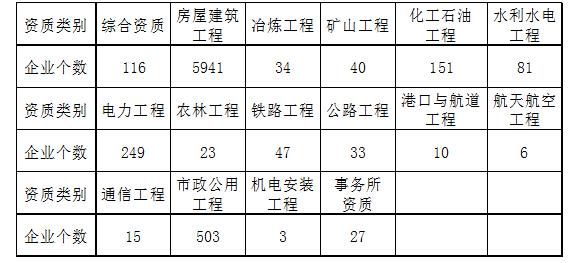 *本统计涉及专业资质工程类别的统计数据,均按主营业务划分。