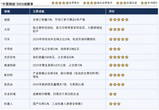 半导体产业虽在成熟制程取得进展,但整体自给率仍仅为20%左右,与70%的目标尚有差距;机器人产业的国产化率达到52%,工业机器人密度位居全球第三,但距离70%的国产化目标仍需努力;农业机械领域相对滞后,市场仍主要被美日欧企业主导。总的来看,在十个核心领域中,七个领域表现优异并达到或接近世界领先水平,其余三个领域虽有明显进步但仍需加强。